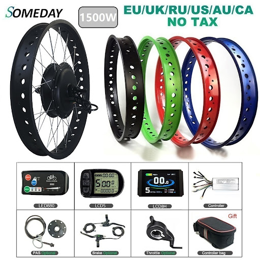 Discount 70% Price - SOMEDAY Electric Snow Bike Conversion Kit 48V1500W 26 Inch Rear Rotate BLDC Hub Motor Wheel for Fat Tire Bicycle with Free Worldwide Shipping NOW!